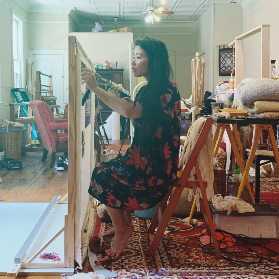 Every year, I reread a five-page impassioned letter that Sol LeWitt wrote to Eva Hesse in 1965 encouraging her to let go of self-doubt in her creative practice. “Just stop thinking, worrying, looking over your shoulder wondering, doubting, fearing, hurting, hoping for some easy way out, struggling,… grinding, grinding away at yourself. Stop it and just DO!” I’m heeding these words by creating a series of monochromatic tapestry weavings with the sole purpose of experimentation and play.